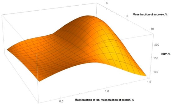 where: x—mass fraction of sucrose, y—ratio of mass fraction of fat to mass fraction of protein, z—RBV of yogurt.