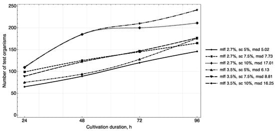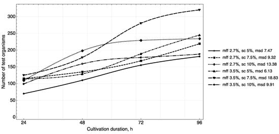 Thus, the results of the study of the daily increase in biomass in yogurt samples and the morphological characteristics of test organisms corresponded to the trend identified during the full-factor experiment.
