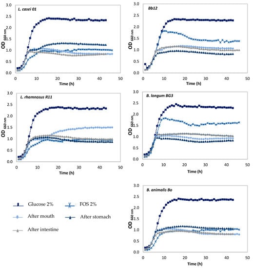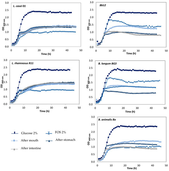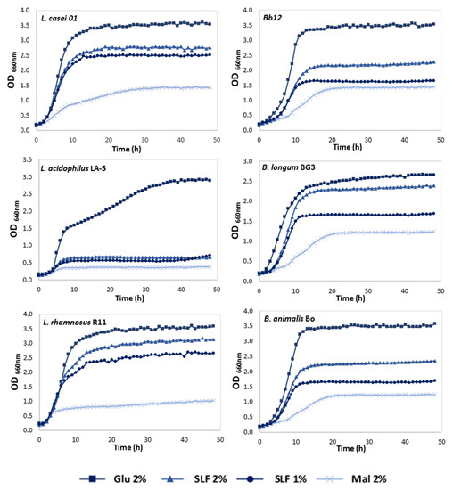 - Østlie, H.M.; Helland, M.H.; Narvhus, J.A. Growth and metabolism of selected strains of probiotic bacteria in milk. Int. J. Food Microbiol. 2003, 87, 17–27. [Google Scholar] [CrossRef]
