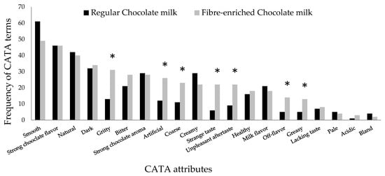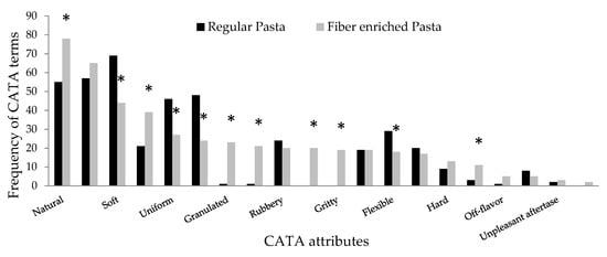 t-test analysis with a significance level of 0.05. Raw CATA data were converted into binary data based on frequency of citation (1—cited, 0—non-cited). Nonparametric Cochran’s Q test was then performed on the binary CATA data to detect significant differences (