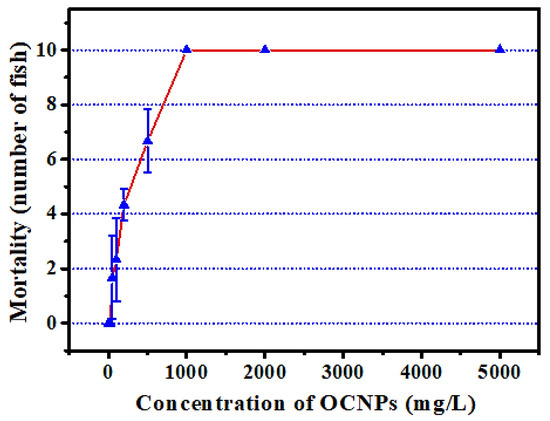 The 96 h LC50 values for zebrafish after exposure to OCNPs.