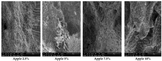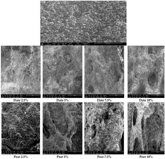 Scanning electron microscopy of dough enriched with date, apple, and pear by-products.