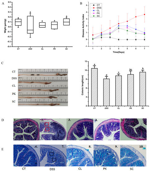 - Chassaing, B.; Aitken, J.D.; Malleshappa, M.; Vijay-Kumar, M. Dextran sulfate sodium (DSS)–induced colitis in mice. Curr. Protoc. Immunol. 2014, 104, 15–25. [Google Scholar] [CrossRef]