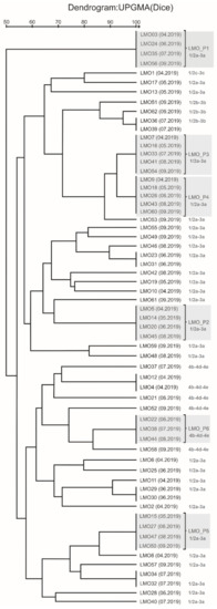 In this pool of strains, the LMO-P3 and LMO-P4 strains were genetically similar at 93%, while the LMO-P1 strain was the most genetically distant (Figure 2).