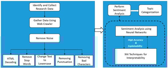 Although customer feedback or reviews are easily obtained from blog posts, comments, reviews or tweets, the data can be of a very large volume. DL models have always shown good performance with a large volume of data. Thus, new DL or hybrid models should be tested to obtain the best accuracy. The negative sentiments can be categorised into various complaint groups using topic modelling. For the DL models, explainability must be reduced to achieve high accuracy; however, XAI can support the explainability part of the model. Several research papers have presented the usage of ML or DL techniques for sentiment analysis in customer reviews; however, no study has been conducted on XAI with DL in the FDS domain. With the surge in FDS usage due to COVID-19 lockdowns, the solution (Figure 2) can definitely help the food industry to quickly adapt to customer requirements and preferences.