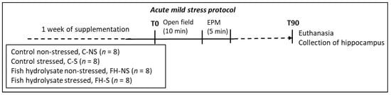 In this study, we performed label-free quantitative proteomic analysis to explore hippocampal protein modulation induced by fish hydrolysate supplementation in mice exposed to an acute mild stress.