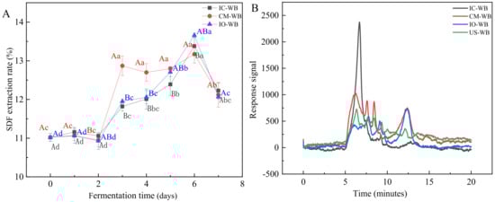 3.1. Extraction Yields and Molecular Weight Distributions of Soluble Dietary Fibers