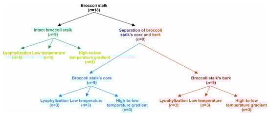 For this purpose, the quantification of the bioactive metabolites obtained during the gastrointestinal digestion of broccoli stalks undergoing freeze-drying and drying by applying a low temperature or high-to-low temperature gradient was developed (Figure 2).