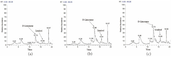 Transient overexpression of ZbDXS and ZbFPS in Nicotiana benthamiana. Control group (a). Transient expression of ZbDXS in Nicotiana benthamiana (b). Transient expression of ZbFPS in Nicotiana benthamiana (c). The X−axis represents the retention time of the peak outflow, and the Y-axis represents the relative integrated area of the chromatographic peak.