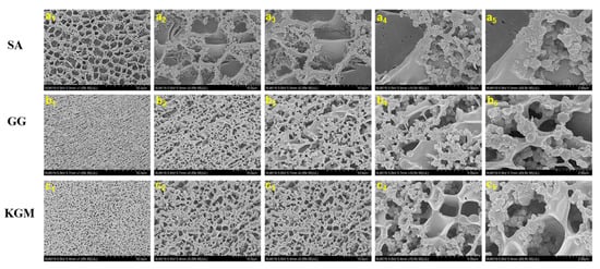 2.6. Microstructure Observation by Cryo-SEM and CLSM