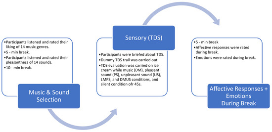 The role of music in evoking emotions has been studied extensively. Flores-Gutiérrez et al. [21] evaluated the subjective feelings elicited by different pieces of music and found that positive emotions were positively correlated with pleasant music conditions. Conversely, negative emotion was reported to be positively correlated with unpleasant music conditions. However, only in the last six years have studies attempted to determine how consumption under music conditions varies in valence-influenced emotions. Kantono et al. [6,7,8] measured emotional responses after the consumption of chocolate gelato while listening to music varying in likeability. Liked music evoked higher ratings of positive emotions and the disliked music condition evoked higher ratings of negative emotions after the consumption of chocolate ice cream.
