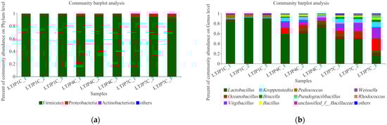 2.2. Bacterial Microbial Diversity Analysis of Fermented Grains