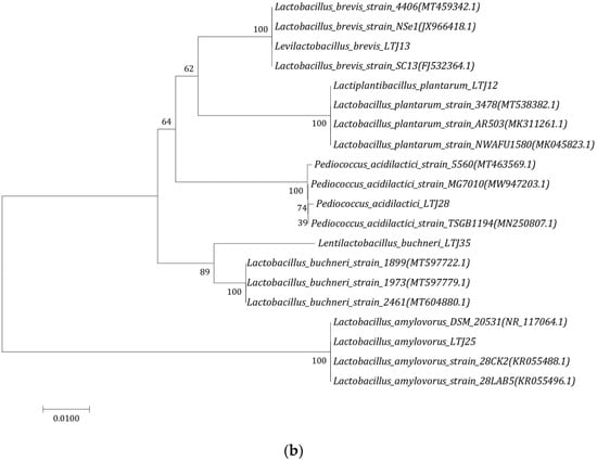 - Bansal, P.; Kumar, R.; Singh, J.; Dhanda, S. Next generation sequencing, biochemical characterization, metabolic pathway analysis of novel probiotic Pediococcus acidilactici NCDC 252 and it’s evolutionary relationship with other lactic acid bacteria. Mol. Biol. Rep. 2019, 46, 5883–5895. [Google Scholar] [CrossRef] [PubMed]