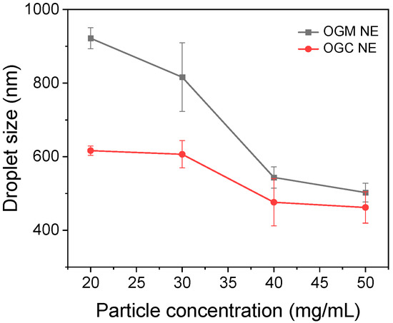 3.3.1. Droplet Size of Oleogel-Based Nanoemulsions