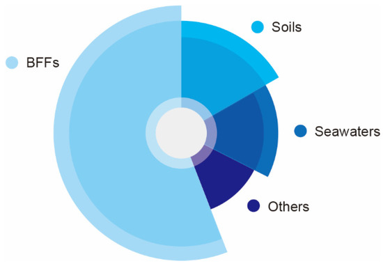 Production strains of NK have been isolated from various sources, such as fermented legumes foods, soils, marine water, plants, dairy products, rust, cow dung and others (Table 2), of which BFFs have been proved to be good resources of NK for a long time, such as natto (Figure 2) [39]. Bacillus spp. are potential microbial sources of NK, which contains B. subtilis, B. amyloliquefaciens, B. licheniformis, B. megaterium, B. pumilus, B.cereus and others [16,40,41].