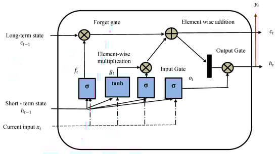 LSTM is a gated RNN, and Bi-LSTM is an extension of the model. LSTM models can learn long dependencies from the previous states as compared to the traditional RNN model []. The Bi-LSTM model is an extension of the LSTM model, where it trains the input data twice using both forward and backward directions. Figure 4 shows the typical architecture of the LSTM model.