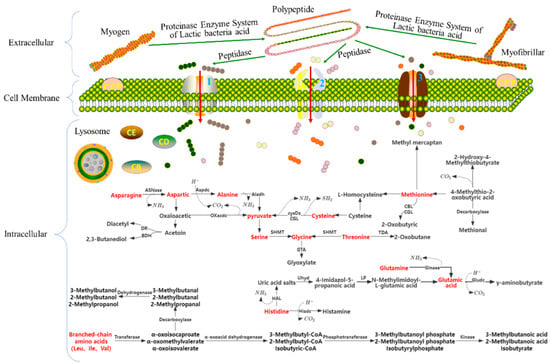 2.1. Effects of LAB on Protein Metabolism and Flavor