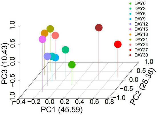 Figure 5. Principal component analysis (PCA) of volatile flavor compounds of ‘Xuxiang’ kiwifruit.
