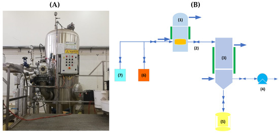 For this study, the DIC MP reactor (manufactured by ABCAR-DIC Process; La Rochelle) was used. Figure 3 shows the picture of the DIC MP reactor (A) and its schematic diagram of the reactor (B).