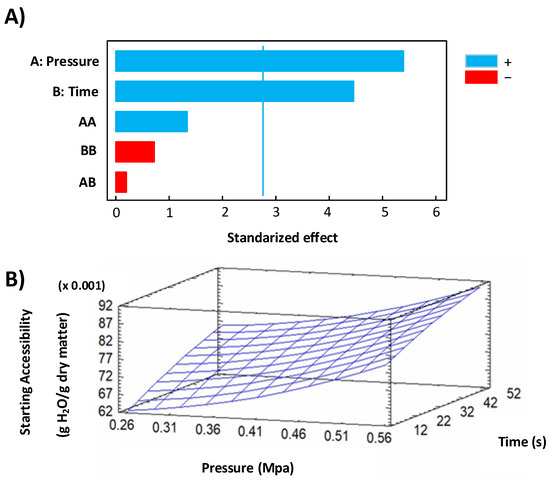 Effect of DIC treatment on starting accessibility: (A) Pareto chart and (B) response surface graph.