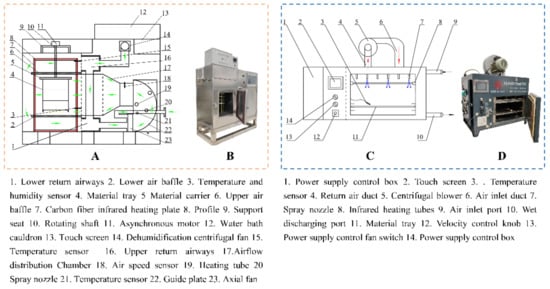 - Wu, M.; Duan, H.; Wang, Z.; Su, Y.; Zheng, Z.; Duan, Q. Design and experiment of infrared-hot air combined dryer based on temperature and humidity control. Trans. CSAM 2020, 51, 483–492. [Google Scholar] [CrossRef]