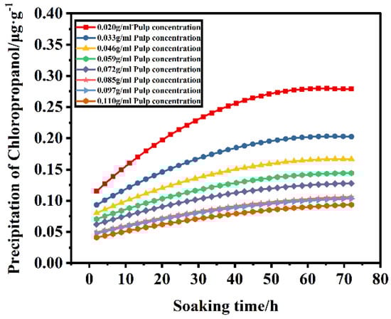 The amount of chloropropanol extracted from pulps with different concentrations varies with soaking time.