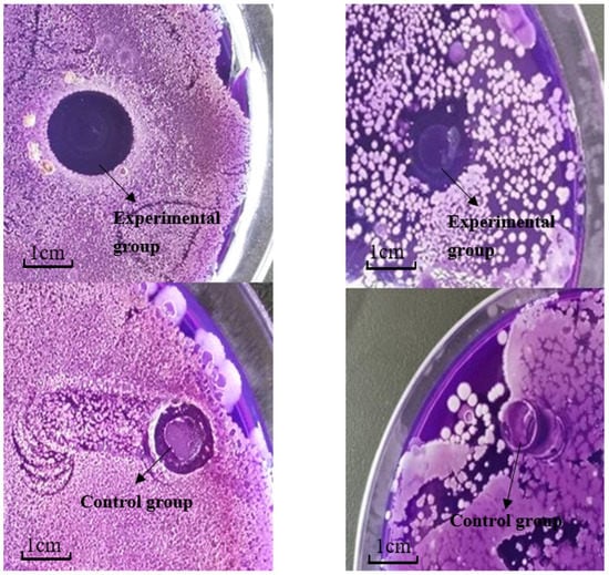 Unlike free essential oils, EO starch microcapsules can be divided into three steps. First, the wall of the microcapsules is diffused (because the compounds of shells are mainly from macromolecule) by degradation and released from the microcapsules; second, the substrate starts to swell and the degradation or corrosion of the shells leads to the release of the EO; third, the released EO works on the bacteria []. In this study, we used chitosan to protect essential oil. Compared to other studies that used, for example, the combination of sodium caseinate and baili EO or the combination of sodium alginate and citronella EO, our SOEO microcapsules showed better antibacterial ability because of synergistic bacteriostasis [].
