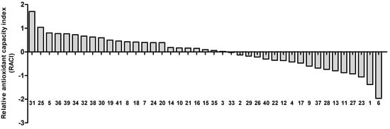 Relative antioxidant capacity index (RACI) of whole wheat extracts (WWE).