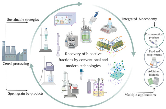- Bonifacio-Lopes, T.; Teixeira, J.A.; Pintado, M. Current extraction techniques towards bioactive compounds from brewer’s spent grain—A review. Crit. Rev. Food Sci. Nutr. 2020, 60, 2730–2741. [Google Scholar] [CrossRef] [PubMed]