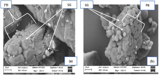Figure 3 shows the scanning electron micrographs of fermented FM flours. The native light-brown FM flour showed a large compact structure of protein bodies (PBs), which was broken down during SF. The starch granules (SGs) in both native flours varied from small to large and were attached to each other in PBs. The subsequent fermented FM flours showed small PBs and more liberated SGs compared to the native flours that had a large structure of PBs with entrapped SGs. This could be due to the SF breaking down a large complex compound into simple molecules. The liberated SGs in the fermented flours varied from small to large with round and oval shapes.