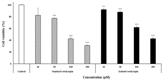 - Cunningham, K.; Manson, W.; Spring, F.; Hutchinson, S. Cordycepin, a metabolic product isolated from cultures of Cordyceps militaris (Linn.) Link. Nature 1950, 166, 949. [Google Scholar] [CrossRef]