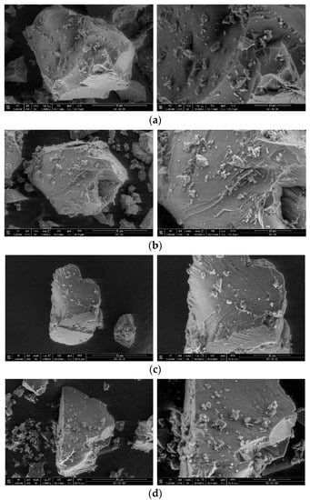 Scanning electron microscopy was performed on a Quanta FEG 250 system (FEI, Hillsboro, OR, USA) using a secondary electron detector (SED). Powder samples were collected using a spatula and were fixed on SEM stubs with carbon tape. Studies were carried out in low vacuum mode at 5 kV and at 1.5 spot sizes, to avoid the charging of powder particles.