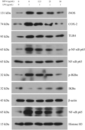 3.4.4. BJP-4 Inhibited the TLR4/NF-κB Pathway
