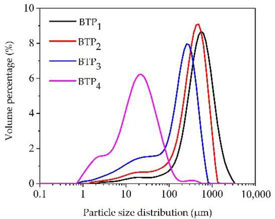 3.1. Physicochemical Properties of BTPS at Different Mechanical Pulverizing Scales
