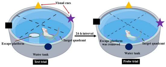 - Morris, R. Developments of a Water-Maze Procedure for Studying Spatial Learning in the Rat. J. Neurosci. Methods 1984, 11, 47–60. [Google Scholar] [CrossRef]