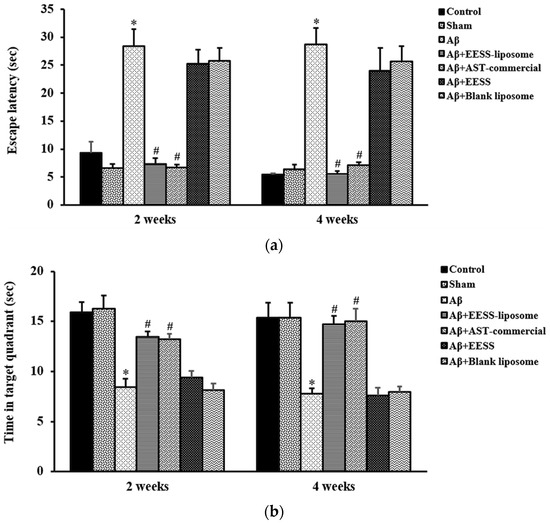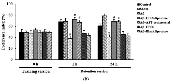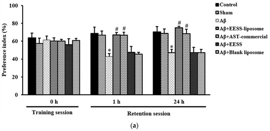 3.3. EESS-Loaded Liposome Improved Memory and Cognitive Ability in the Memory-Related Behavioral Tests