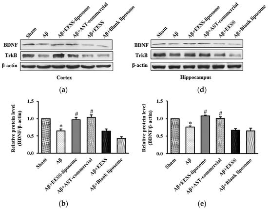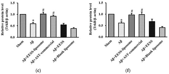 3.4. EESS-Loaded Liposome Increased the Levels of BDNF and TrkB in AD Rats