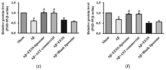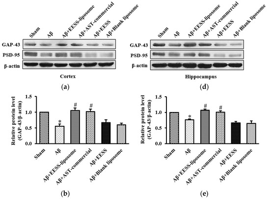 3.5. EESS-Loaded Liposome Ameliorated Aβ-Suppressed GAP-43 and PSD-95 Synaptic Plasticity Proteins