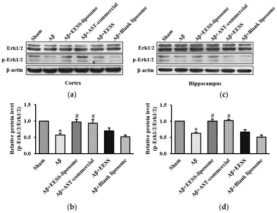 3.6. EESS-Loaded Liposome Suppressed Aβ-Induced Cognition and Synaptic Plasticity Deficits via Erk Signaling Pathway