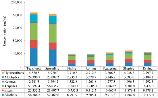 Yin, P.; Wang, J.-J.; Kong, Y.-S.; Zhu, Y.; Zhang, J.-W.; Liu, H.; Wang, X.; Guo, G.-Y.; Wang, G.-M.; Liu, Z.-H. Dynamic Changes of Volatile Compounds during the Xinyang Maojian Green Tea Manufacturing at an Industrial Scale. Foods 2022, 11, 2682. https://doi.org/10.3390/foods11172682