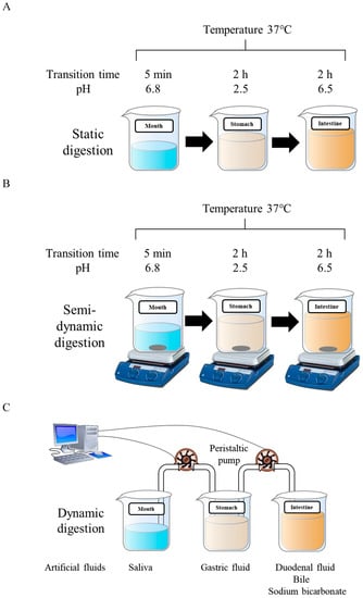- Mulet-Cabero, A.I.; Egger, L.; Portmann, R.; Menard, O.; Mackie, A. A standardised semi-dynamic in vitro digestion method suitable for food—An international consensus. Food Funct. 2020, 11, 1702–1720. [Google Scholar] [CrossRef]
