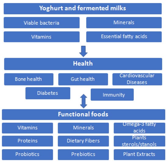 Hadjimbei, E.; Botsaris, G.; Chrysostomou, S. Beneficial Effects of Yoghurts and Probiotic Fermented Milks and Their Functional Food Potential. Foods 2022, 11, 2691. https://doi.org/10.3390/foods11172691