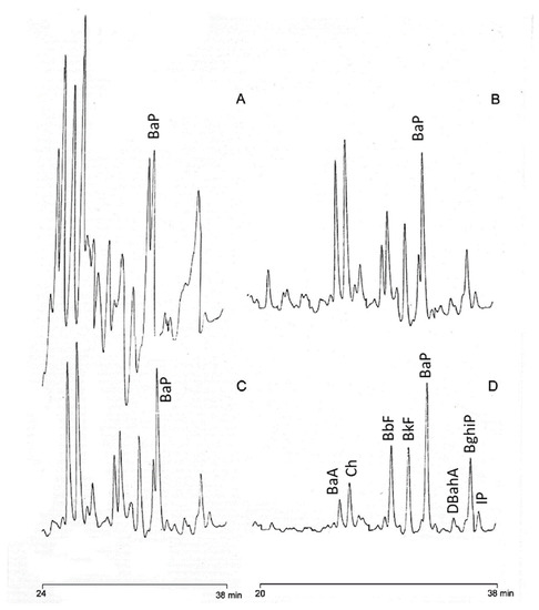 From a legislative point of view, PAHs in foodstuffs are strictly regulated by the Commission Regulation (EU) n. 835/2011, which defines a limit of 10 μg/kg for the sum of four PAHs (PAH4: benzo(a)pyrene—BaP, chrysene—Ch, benzo(a)anthracene—BaA, benzo(b)fluoranthene—BbF) and 2 μg/kg for BaP in vegetable oils [15]. Moreover, Regulation (EU) 836/2011 defines the analytical performances required by the method for analyzing them [16].