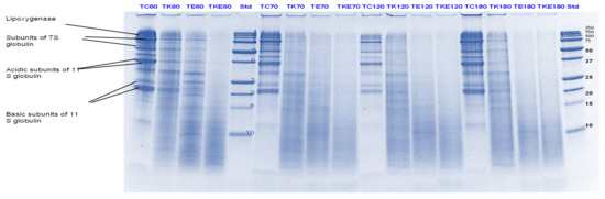 - Kim, S.Y.; Park, P.S.W.; Rhee, K.C. Functional Properties of Proteolytic Enzyme Modified Soy Protein Isolate. J. Agric. Food Chem. 1990, 38, 651–656. [Google Scholar] [CrossRef]
