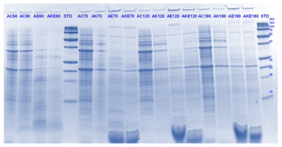 - Qi, M.; Hettiarachchy, N.S.; Kalapathy, U. Solubility and Emulsifying Properties of Soy Protein Isolates Modified by Pancreatin. J. Food Sci. 1997, 62, 1110–1115. [Google Scholar] [CrossRef]