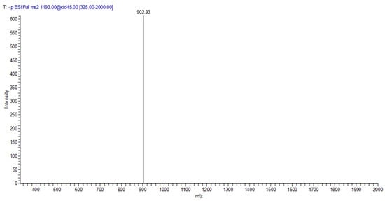 MS2 spectrum of Corklin (m/z 1193) obtained by LC MS analysis of Vintage Port wine stored in the horizontal position, with the main fragment at m/z 903 (M—290, loss of a catechin unit).