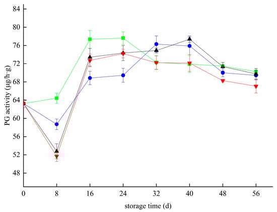 3.4. Effects of Different Treatments on the PG Activity of Blueberry