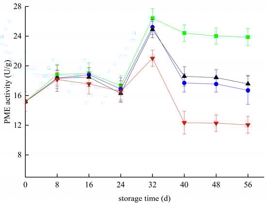 3.5. Effects of Different Treatments on the PME Activity of Blueberries