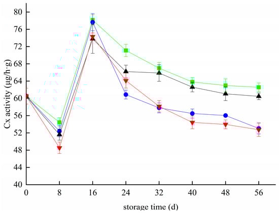3.6. Effects of Different Treatments on the Cx Activity of Blueberries