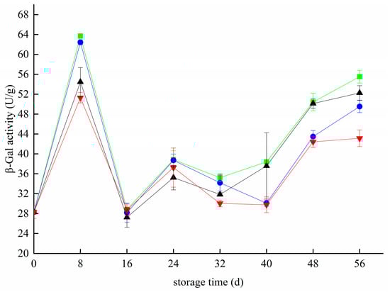 3.7. Effects of Different Treatments on β-Gal Activity in Blueberry